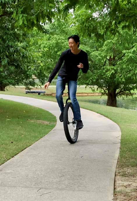 But always the unicycler and now a kids’ birthday party entertainer, Tennyson shoots hoops and jousts with DIY foam swords on his wheel to help make memorable celebrations. Through mountain trails, rivers of traffic and birthday backyards, Johns Creek’s unicycler continues carving his own path.