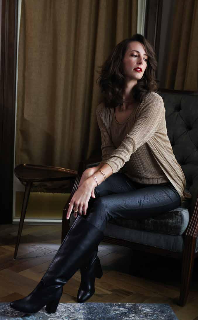 CONTINUED > Alysa Rene: leather jacket, black. Sleeveless crew neck blouse, coco. Wide leg distressed denim. Leather blazer, black. Linen tank, coco. Skinny Jean denim. Coco suede belt 17| CITYLIFESTYLE.COM/JOHNSONCOUNTYSEPTEMBER 2022