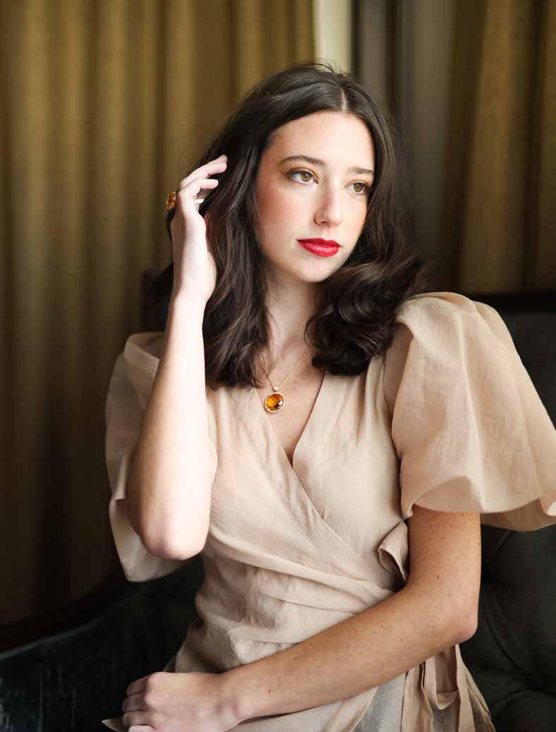INSPIRED BY | ARTS + CULTURE Clairvaux: Carolina wrap top, nude Jewelry: VanBrock Rose Gold and Citrine Ring and Pendant 16