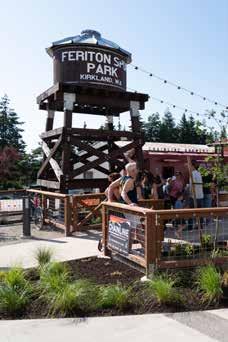 1: The audience gathered for speeches commemorating the opening of Feriton Spur Spark. 2: Visitors check out Chainline Station’s outpost at the park, an extension of Chainline Brewing. 3: Speakers, elected officials, and others gather to commemorate the park’s opening. 4: Kirkland Mayor Penny Sweet chats with Google’s Ian Goodhew and WA State Rep. Larry Springer. 5: Humans and dogs alike enjoying the day’s opening festivities. 6: Kids enjoy the splash pad within Feriton Spur Park, located on Google’s 6th Street Campus. 7: Kirkland Mayor Penny Sweet addresses the crowd during the program. Photography by Mike Nakamura Photography LLC @kirklandlifestyle