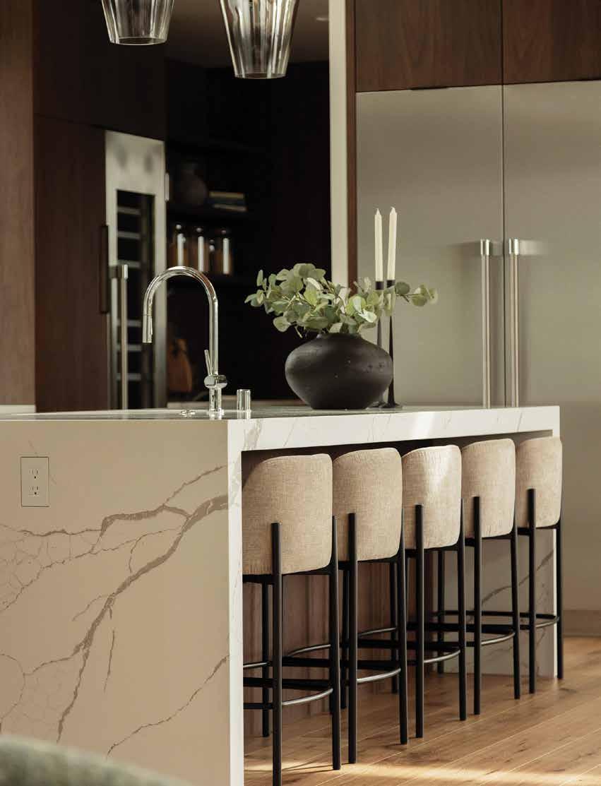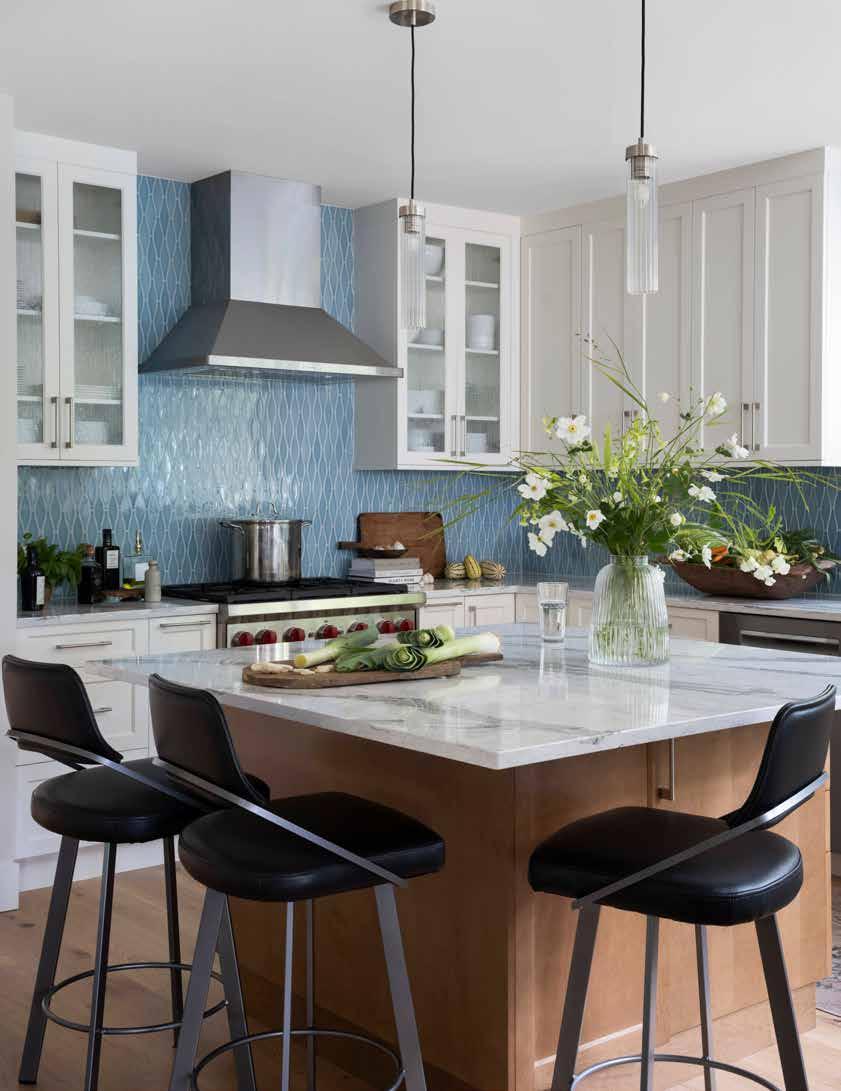 Goodbye stark white everything; it’s time to diversify with color, texture and textiles. Warm colors set an earthy tone. Vintage pieces mix with modern to add depth and character with a focus on sustainability. Tactile touches featuring paneled walls and textured wallpaper – even on the ceiling. Formal dining rooms are back, even in an open concept home. Over-the-top Powder Rooms showcase color, wallpaper and one-ofa-kind vanities and fixtures.