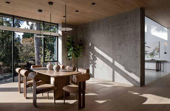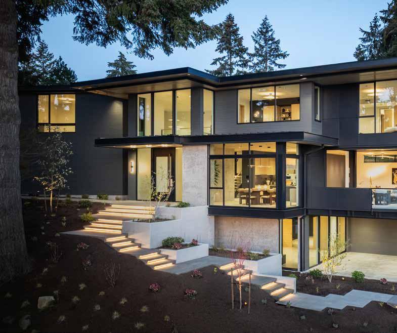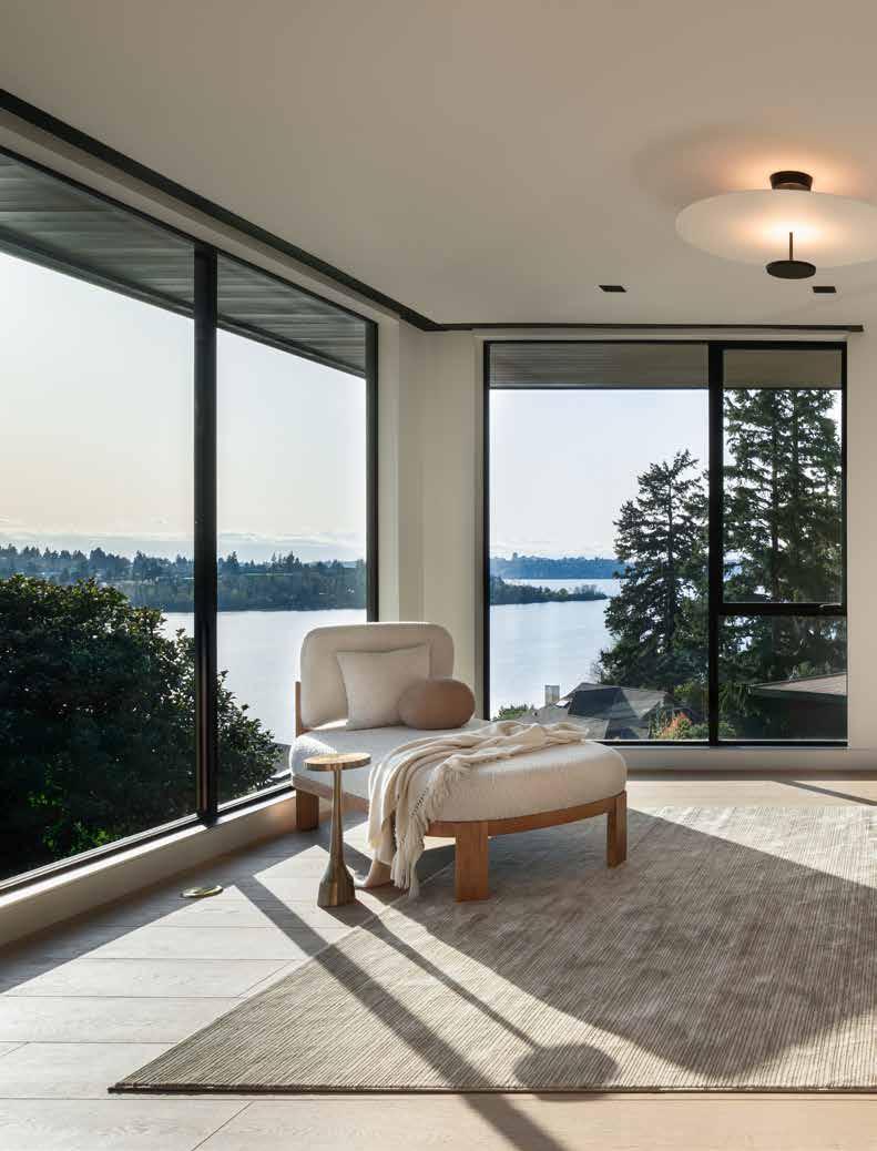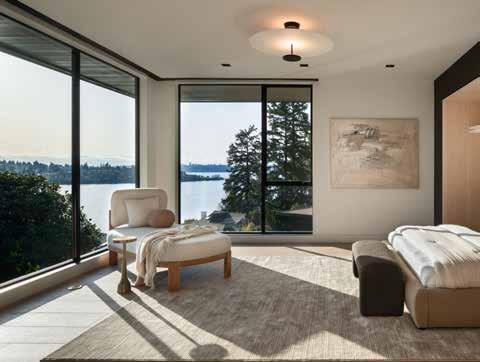 Perched in Bellevue’s coveted Enatai neighborhood, this 7,950-square-foot residence is a masterclass in balancing bold design with timeless livability. Featuring five bedrooms and five and a half baths, the home unfolds with an effortless rhythm: grand yet grounded, sophisticated yet serene. Every line, material, and proportion was carefully considered, resulting in a residence that feels as connected to the Pacific Northwest landscape as it is to the people who live within it. Expansive windows frame panoramic water views, deepening the home’s connection to its surroundings.