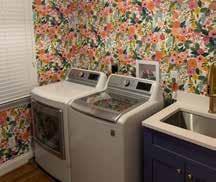 When we purchased our home, one of our goals was to move laundry from the basement to the 2nd floor, as we saw in many newer builds. This made doing laundry more convenient and efficient. Adding wallpaper and custom-painted cabinets helped brighten up a dull space. Now, folding laundry is more fun with this view.