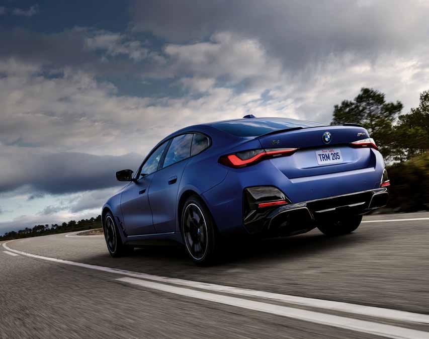 The All-Electric BMW i4 Gran Coupe models offer class-defining style and unbridled performance, with up to 536 hp (i4 M50), 301 miles of range (i4 eDrive40), precision handling, and a chassis made from innovative materials, such as high-tensile steel and aluminum. The standard Rear Air Suspension delivers consistent ride height and comfort.
