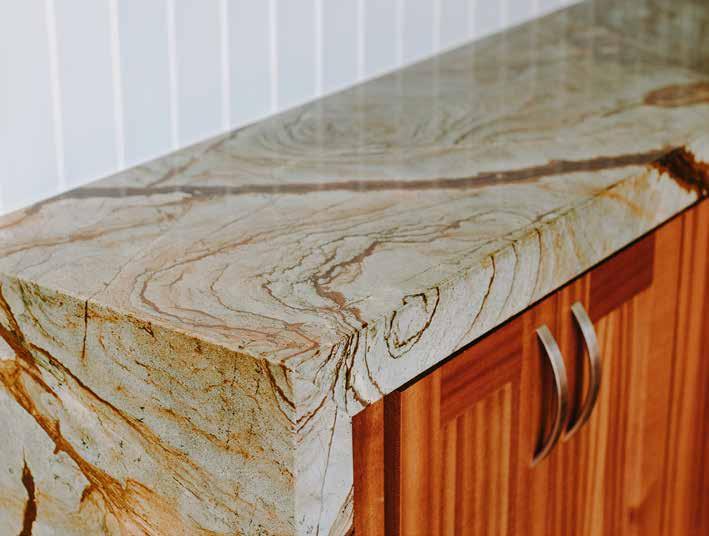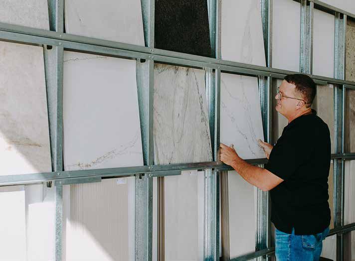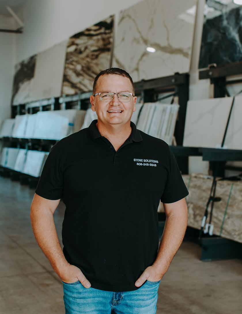 A lot of materials at Stone Solutions come from Brazil, India and Italy. Brazil is the main driving force in the stone market right now, as it has some of the nicest veins of material. Yet, the new thing in the stone market that solves a lot of the maintenance issues is porcelain. “Hawai’i is catching up to the porcelain trend that is all over the mainland and even worldwide, especially huge, beautiful, walk-in showers. Porcelain doesn't wear and tear, it doesn't absorb water or stain. You don't need to seal it, and it can be in direct sunlight. So most of your applications' problems are solved by this new product,” Christian shares.