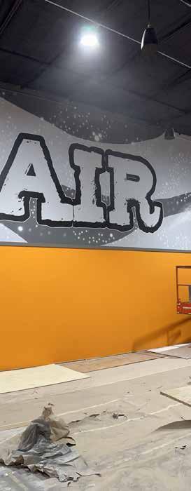 The two murals I painted at Big Air Trampoline Park on FM 1960. One is 30 feet tall and the other is the largest I’ve ever done. It was intimidating, but I faced my fear of heights, learned to use a scissor lift and leaned on prayer and my wife’s support. I’m really proud of those.