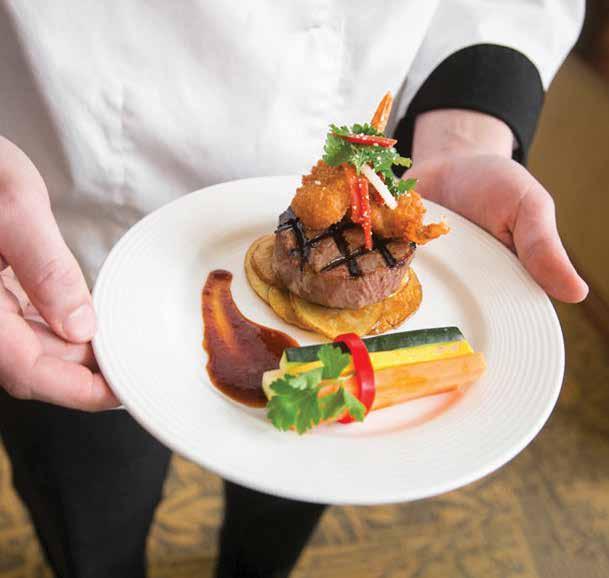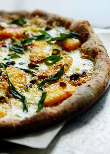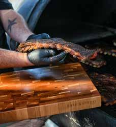 OUTDOOR ADVENTURE | FOOD + BEVERAGE Tasty Creations BRADSHAW BEANS (for the oven or smoker) Recipe from Terry Bradshaw, created with his son-in-law, Noah Hester INGREDIENTS • 2 lb. ground beef • ½ lb. bacon • 2 bell peppers • 1 white onion • 2 cans each black beans, red beans, navy beans • 2 cups Bradshaw Bourbon BBQ Sauce or your favorite BBQ sauce DIRECTIONS Preheat oven or smoker to 350 degrees. Brown ground meat and drain off the fat. Open, rinse, and drain half the beans and keep half with the juice. Mix all ingredients together in a large foil pan, cover with foil, and bake or smoke for 40 minutes. Uncover and cook for another 30 minutes. PEACH PIZZA (for a backyard pizza oven) Recipe from Myke Olsen of Myke’s Pizza, MykesPizza.com PEACH PIZZA TOPPINGS • 2 oz. gouda, grated • 2 oz. low-moisture mozzarella, grated • 4 oz. fresh mozzarella, torn into quarter-sized pieces • 1 fresh peach • Fresh sage • Pistachios • Oil DIRECTIONS Preheat oven to 500 degrees. Cut peach in half and remove the pit, then slice into ¼” slices. Note: Frozen peaches can also be defrosted and used. Prepare crispy sage by removing leaves from stem of sage pieces. Heat a small amount of oil in a Dutch oven or skillet over medium-high heat. Add the sage leaves to the oil and cook quickly until bubbling of oil slows. Remove leaves and place on paper towels to drain excess oil. Rough chop pis tachios. Stretch out pizza dough. Break up mozza rella and gouda cheeses into chunks, and scatter over pizza. Add peaches. Cook for 5 minutes, rotate a half turn, and cook for another 5 minutes or until the crust has browned. Remove pizza from oven and add pistachios and crispy sage, and serve. Courtesy Myke's Pizza Courtesy Bradshaw Ranch 16