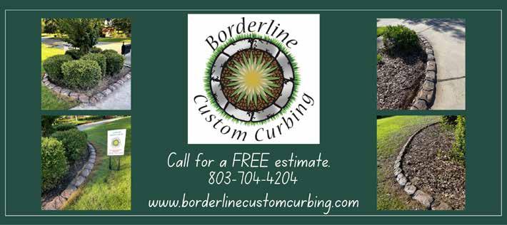 Living Well Family Medicine is a medical practice designed for you! Dr. Dee 803-951-2750Carter • 24/7 Access to Your Physician • Fewer Patients = No Rushing • Insurance Free = Hassle Free www.livingwellfm.com MENTION THIS AD FOR LAKE MURRAY LIFESTYLE PRICINGA&D TREE SERVICE Follow Us on Facebook Call 803-687-6095 or emailSERVINGINFO.ADTREESERVICE@GMAIL.COMTREEEXPERTALLOFCOLUMBIA,LEXINGTONANDBEAUTIFULLAKEMURRAY Services HaulingStumpTreePruningTrimingGrindingandClean Up • Open 24 Hours • Licensed & Insured • Locally Owned & Operated by Daniel & Amber Leaphart DEEP CLEANING OF GRILL RACKS | HEAT PLATES | INTERIOR OF BARBECUE TOTAL DEGREASING OF CONTROL KNOBS | PULL-OUT TRAYS & BURNERS | THERMOMETER | IGNITER SWITCH High quality repair and cleaning services at an affordable price. (803) CENTRALSC@BAR-B-CLEAN.COMBAR-B-CLEAN.COM/CENTRALSC339-0345 23| CITYLIFESTYLE.COM/LAKEMURRAYSEPTEMBER 2022
