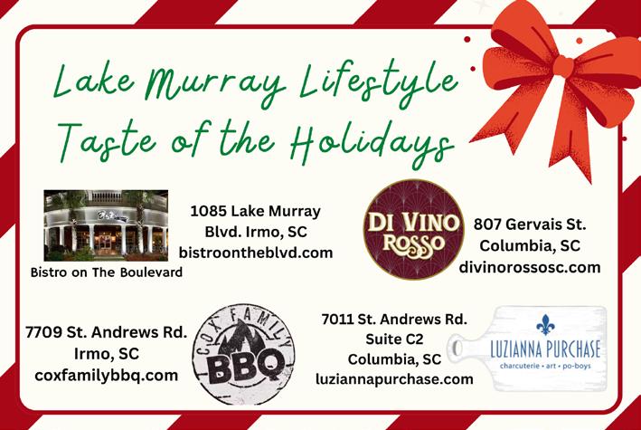 The holiday season is here, and there’s a special kind of magic in the air! Lake Murray is aglow with lights, laughter, and the spirit of togetherness that makes this time of year so memorable. From our charming holiday markets to festive community gatherings, there are plenty of ways to enjoy the season with family and friends. I hope you’ll find a little time to get out, explore, and soak in all the fun our town has to offer. December is also a wonderful reminder of the power of kindness and giving. Whether it’s donating a toy, volunteering a bit of time, or simply sharing a warm smile, small acts make a big difference in our community. Let’s come together to brighten someone’s holiday and lift each other’s spirits. And, of course, I hope you enjoy every moment with loved ones. The laughter, the stories, and those simple traditions hold a special place in our hearts all year long. Here’s to a holiday filled with joy, gratitude, and memories that last! Wishing you a warm and wonderful season,