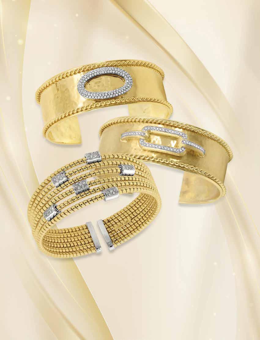 C. 18k yellow + white gold cuff bracelet with .46ct. t.w. Round Brilliant Diamonds