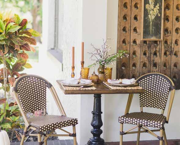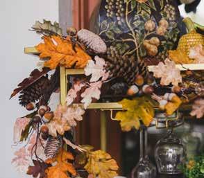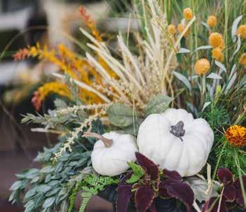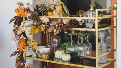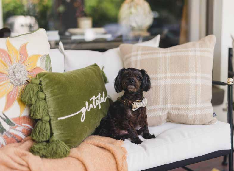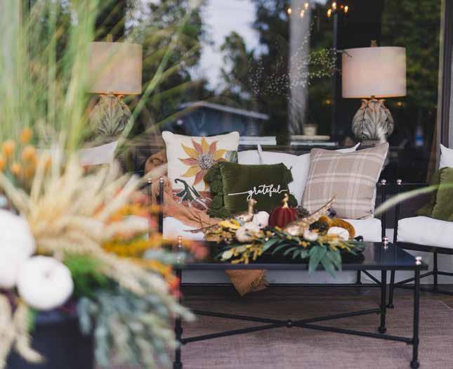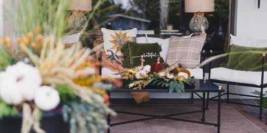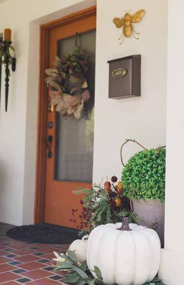 Styling your porch doesn’t have to be expensive. Britteny advises starting by shopping your home to see what can be repurposed. Decorating for the season rather than a specific holiday can also extend the life of your décor. For example, use a fallthemed bowl as a planter, and if you need to buy new items, don’t hesitate to paint them to match your palette.