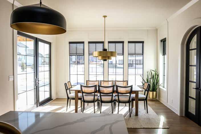 contrast or even completely disappearing during the day and letting the windows shine and natural light in. Then at night when pulled down, they bring in beautiful contrasting color to the space. I just love the warmth and sophistication they add,” she smiled.