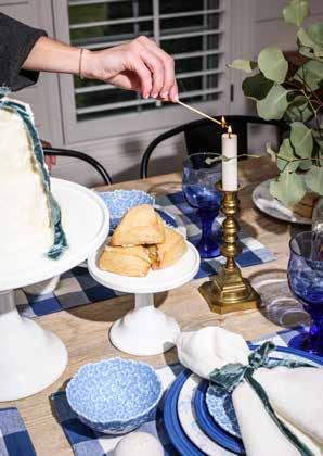 You would never know that this sophisticated look was created by using the timeless, everyday dinnerware line by Fiesta. To create this elevated table scape we used pieces from the Fiesta Botanical Floral line as well as Fiesta pieces in the color Lapis from Cockrell Mercantile. Combining these two lines along with delicate accent pieces creates a unique and elegant table that holds up to every day use as well as special moments too. This look was built by adding pieces from Cockrell Mercantile including delicate floral bowls, scalloped white tumblers, complimentary blue stemware, white napkins tied with velvet bows, paired with a large patterned placemats in coordinating colors. The finishing touch of fresh eucalyptus placed as a centerpiece brings this whole look together— ready for a moment to be shared and remembered as long as these timeless pieces will last… a lifetime!
