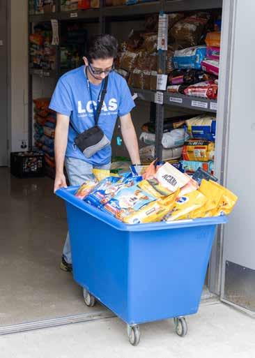 Last September, Hunger Relief cut the ribbon on a choice market that allows clients to shop for the food they need, and it includes an entire shelf for the Pet Pantry. Clients may select one kit each for dogs and cats.