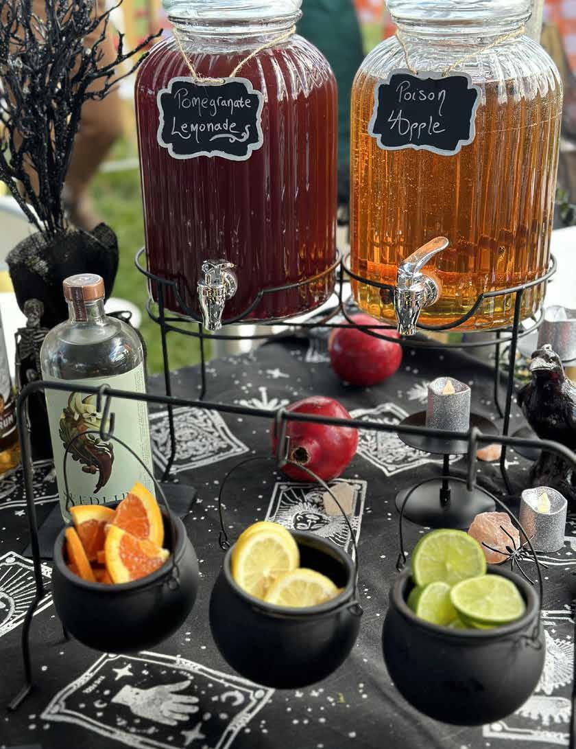 For added flair, consider naming your drinks to match your theme, like Shepard’s “Poison Apple” (apple juice and ginger ale with cinnamon sticks and cloves). “If you make a batch drink and give it a fancy name, it presents very nicely,” Shepard said.