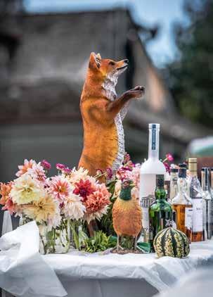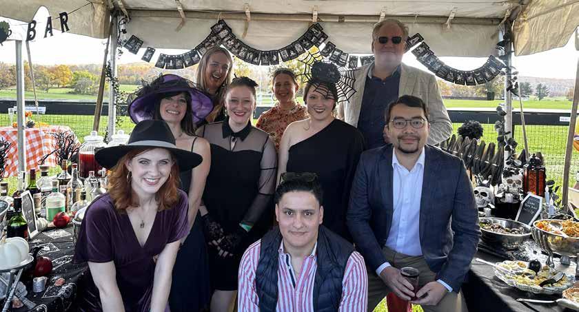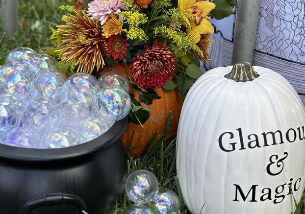 Credit: Aliana Shepard This page, top: A Halloween-flavored Glamour & Magic theme helped Aliana Shepard’s team lift the 2023 International Gold Cup’s tailgating trophy. Credit: Aliana Shepard | Bottom left: Use decorations that reflect your theme. Credit: Tara Jelenic | Bottom right: Silver skeletons, a coffinshaped menu, and apple pie with spooky symbols echoed Aliana Shepard’s Glamour & Magic theme. Credit: Aliana Shepard