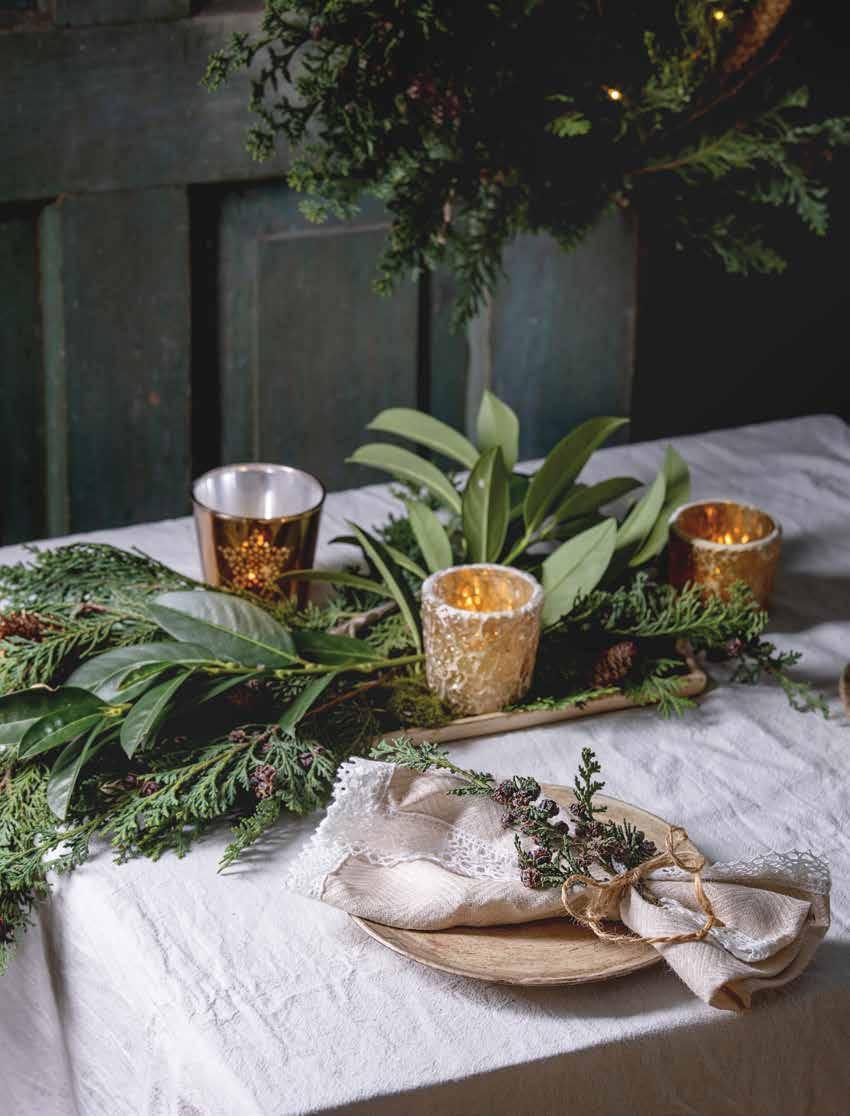 There’s no need to go out and buy a ton of additional decor when you just decked the halls (quite literally) with holiday ornamentation. Make those decorations work as hard as you did by repurposing all the greenery, pine cones and wood place settings you just couldn’t say no to. Throw in some neutral napkins, some natural twine and some dried orange peels for a woodsy (and fragrant) twist.