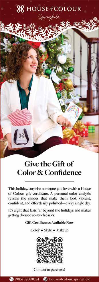 Book your color and style analysis today by visiting houseofcolour.com/janrivers, emailing jan.rivers@houseofcolour. com, or calling 985-320-9054. You can also follow Jan on Instagram at @houseofcolour_springfield for inspiration and updates.