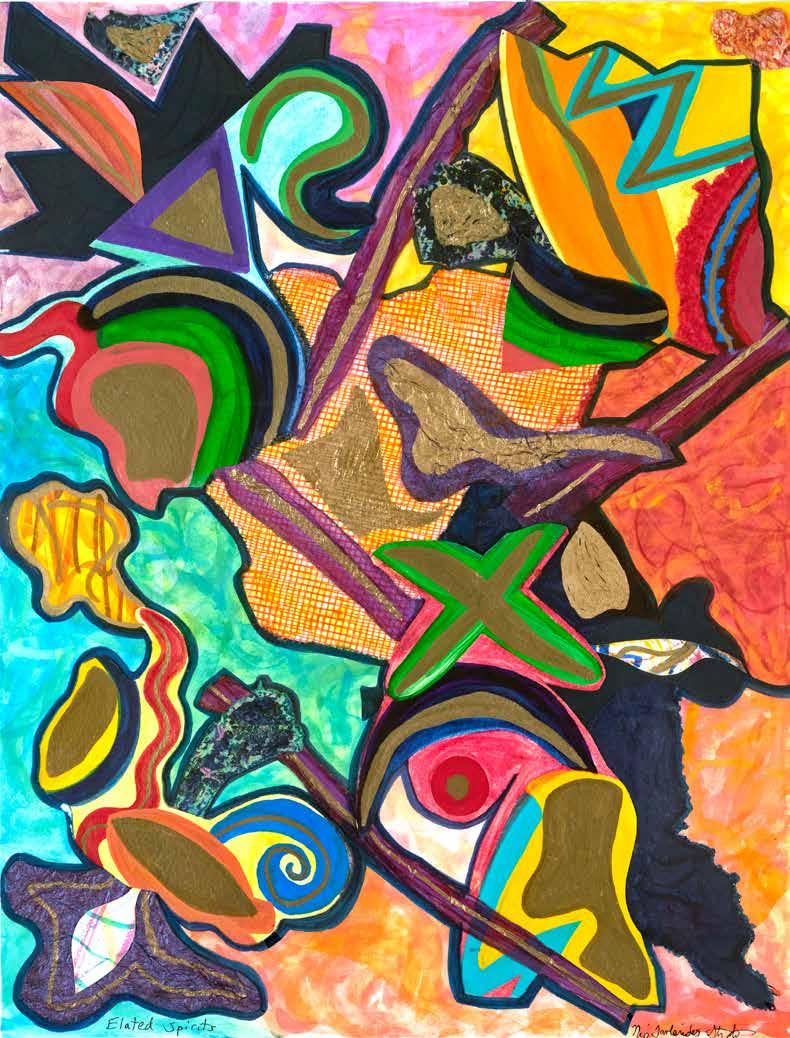 It's visible in her process, too. She sometimes blows pigment through straws, mimicking the organic fluidity of nature. “It’s about letting go. I never know what a painting will truly be until it’s done.” That feeling is palpable. Her art radiates warmth and energy, with titles like Elated Spirits and Evolution hinting at deeper themes of harmony and transformation. “I’m not a sad artist,” she says. “I create from joy. I want people to feel something when they look at my work—empathy, connection, maybe even just a moment of beauty.”