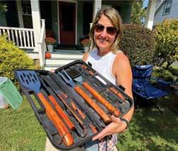 1: Media resident Tommy and daughter Audrey ham it up to sell their family canoe 2: Mary relaxes with her classic Christmas decorations for sale 3: (L-R) Friends Emily, Paige, and Maren donated their proceeds to the Ronald McDonald House 4: Think BBQ season is over? Not according to Julia 5: Jen assures us painting will make your house look bigger 6: United Women of Faith group use Media Yard Sale to raise money and awareness 7: Cindy shares a special gnome in her yard sale Photography by SCOTT DAVIDSON