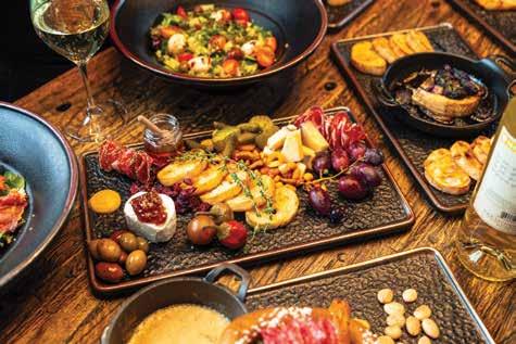 Start with a cocktail (or two). The Wascally Wabbit or an Old Fashioned, made with Buffalo Trace, dark sugar blend, and Angostura, are worthy sips. On the lighter side, the Chilled Shrimp served with lettuce cups, English cucumber, and dipping sauces is a great way to begin. The Spanish Octopus Carpaccio, paired with Kalamata aioli, charred lemon, and arugula, will bring a summer vibe to the table.