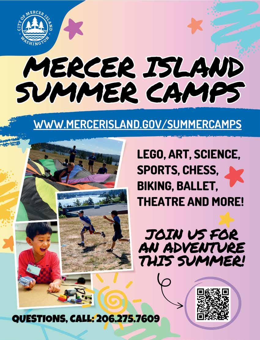 environmental sustainability with activities for all ages. This year’s event is from 10am-1pm featuring workshops, educational booths, children’s activities with Nancy Stewart, sustainability and camp fairs, entertainment, rain barrel sales, and food trucks. More information @ www.mercerisland.gov/parksrec/page/ leap-green-sustainability-fair
