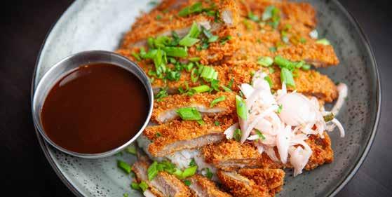 Hawaiian, Korean, Mexican, and American flavors into a cohesive and innovative dining experience. Among the standout dishes is his Chicken Katsu—a nod to both Japanese comfort food and a Hawaiian staple. Jason’s rendition features crispy, golden-brown chicken cutlets served over rice, embodying the fusion of cultures that defines his culinary philosophy. This dish, like