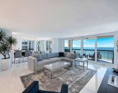 Each en suite bedroom has its own coffee bar with a refrigerator for the ultimate entertaining and privacy for guests. The primary suite also enjoys a private balcony and spa-like bathroom. The present homeowners found the walkability, private beach access and the building’s numerous top-notch amenities endearing.