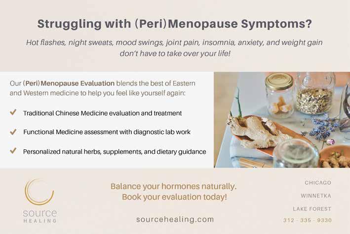 Join Christie Jordan, founder of Source Healing, at 6 p.m. on March 13 at SALT North Shore (410 Green Bay Rd., Kenilworth) for Menopause: A Second Spring –Embracing Renewal and Growth. This workshop explores menopause through traditional Chinese medicine, highlighting wisdom, intuition, and spiritual awareness. Includes guided meditation and sound bowl session. Fee: $100. Register at sourcehealing.com.