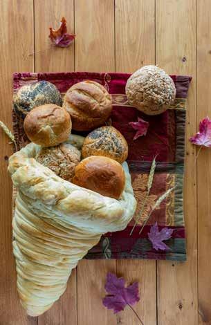 Make an edible bread cornucopia, ‘horn of plenty,’ for the Thanksgiving table using refrigerated bread or pizza dough, a plastic bottle mold and aluminum foil. Wrap the bottle with foil, make a tail at one end and then layer adjoining strips of dough on the foil. Brush cornucopia with melted butter, remove the plastic bottle and bake at 350 F for 25 to 30 minutes on the lower rack, or until it turns a golden, shiny brown. Fill with sweet or savory nibbles, such as fresh fruits, vegetables, gourds, nuts, rosemary breadstick twists or even cookies, for an impressive centerpiece that’ll keep guests happily munching while they wait for the main meal to begin.
