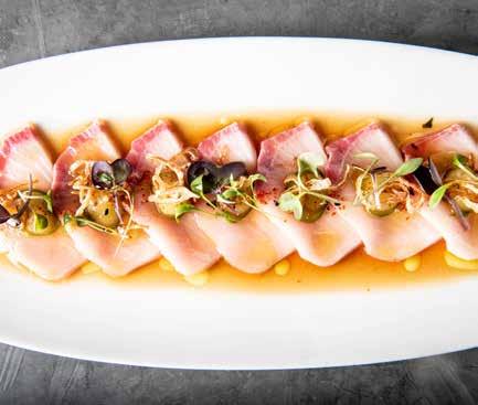 Hamachi crudo with pineapple, serrano pepper, crispy shallots and citrus-soy dressing from the raw bar at Foxtail on the Lake in Des Plaines