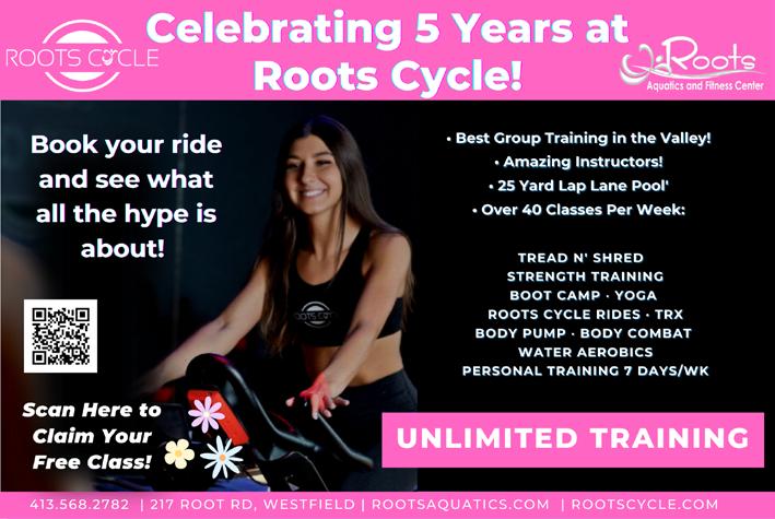Join us for our annual Spin ‘n Sip event! Ride from 6:30-7:15 with beverage tasting from 7:15-8:00pm. Book your ride at rootscycle.com or call 413-568-2782.