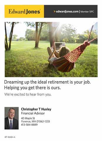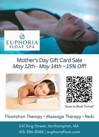 413.585.1169 | www.inspiritcrystals.com 219 Main St Northampton, MA 01060 Discover the wisdom of many traditions, stones and gifts with meaning. A metaphysical gift shop offering beautiful items from a wide array of spiritual backgrounds. NOW OPEN 7 DAYS A WEEK! 18 Mechanic Street, Easthampton Mon-Fri 8-6 | Sat 8-4 413-527-0778 | www.easthamptonfeed.com YOUR LOCALLY GROWN AND LOCALLY KNOWN FARM AND PET FOOD STORE COTTAGEST. PAYSONAVE. UNIONST. LIBERTY ST. MECHANICST. RAILTRAIL “To plant a garden is to believe in tomorrow.” – Audrey Hepburn Come on in to get 15% off plants & pots with this ad! the long game Playing Pickleball this summer? Avoid injury, improve your game, and have more fun! Injury Prevention & Conditioning Classes for Pickleball Join us for live, online, 30-min classes! For times, info, and to register, scan here: thelonggame.coach/pickleball The more love you invest in yourself, the greater the reward for you and everyone in your life. Accepting New Clients! Mindy Dow www.NatureMindCoaching.com (413) 464-1362 | Florence, MA Virtual | In-Person One-on-one | Small Group Coaching 30