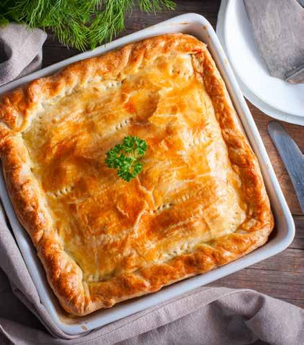 1. Preheat oven to 400°F (200°C). 2. Cook the vegetables: In a large skillet, melt the butter over medium heat. Add the onions, carrots, and celery. Cook for 5-7 minutes until the vegetables are softened. 3. Make the sauce: Stir in the garlic powder and flour. Cook for another 1-2 minutes, allowing the flour to lightly brown and form a roux. 4. Add liquids: Gradually whisk in the chicken broth and milk, stirring constantly to avoid lumps. Let the mixture cook for about 5 minutes, or until it thickens. 5. Add chicken and peas: Stir in the cooked chicken and peas. Season the mixture with salt and pepper to taste. 6. Prepare the pie crust: Roll out one pie crust and fit it into the bottom of a 9-inch pie dish. Pour the chicken and vegetable mixture into the crust. 7. Top the pie: Place the second pie crust over the filling. Trim any excess dough, then pinch the edges together to seal. Make a few small slits in the top crust to allow steam to escape. 8. Egg wash (optional): For a golden finish, brush the top of the crust with a beaten egg. 9. Bake: Place the pie in the oven and bake for 35-40 minutes, or until the crust is golden brown and crispy. 10. Cool and serve: Let the chicken pot pie cool for about 10 minutes before slicing and serving. Enjoy the comforting warmth of a homemade classic!