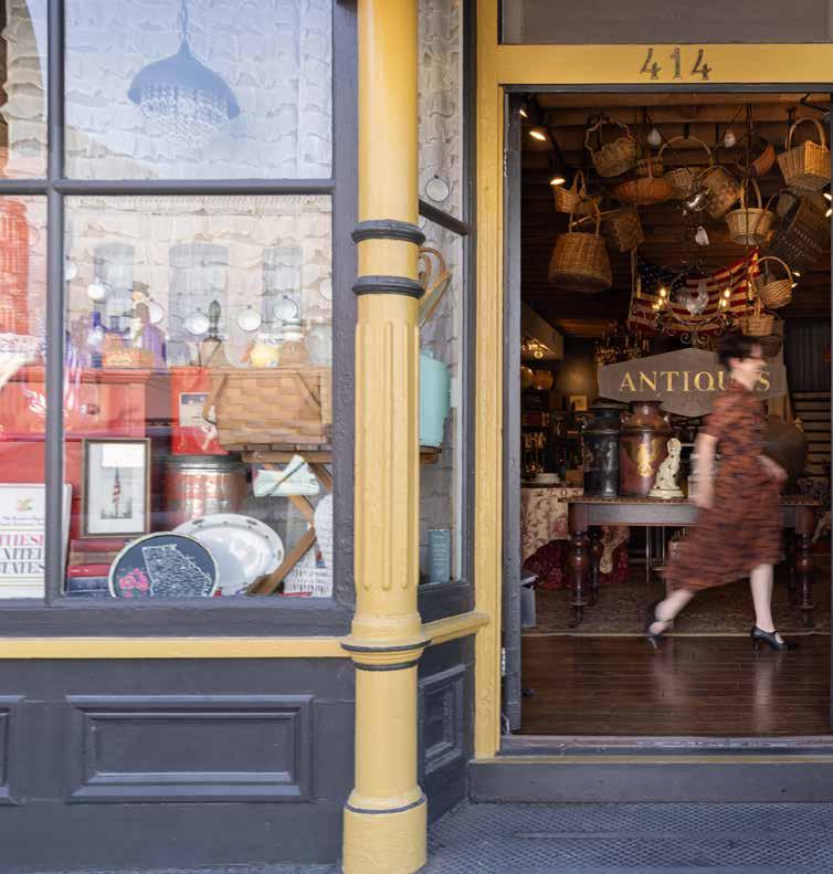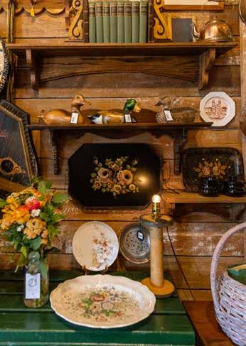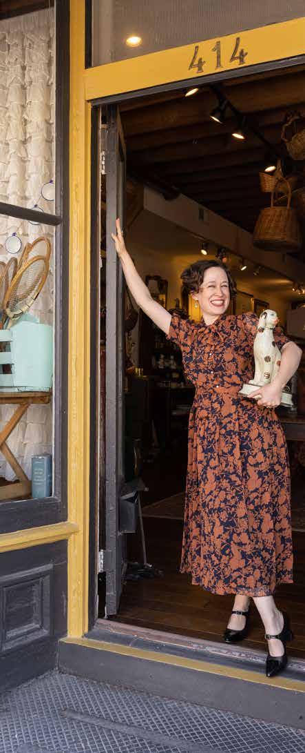 Of course, some may think wallpaper is dated or may harbor resentment toward the medium after tricky removal jobs, but it has seen a renaissance in recent years. Brittany says newer products are a definite improvement to what most of us are familiar with removing from dated houses and believes the revival comes from the fact that “people started missing hav ing fun patterns on the wall.” While in the process of launching her wall paper line, Brittany started looking for a space to house her wallpaper material that could also act as a studio and presentation space for the Beverly Collection. She found the perfect space in historic downtown Weston, though the space was far bigger than she needed. While she could utilize the upstairs for Beverly-Jane and the Beverly Collection, she needed to figure out what to do with the downstairs space and felt the building was far too beautiful not to be open to the public. A monthly antique market proved the solution.
