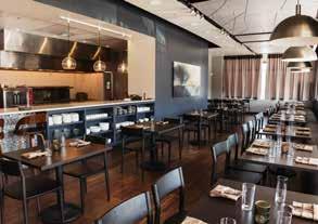 envisioned a comfortable space with stellar tradi tional eats. The interior of Acre is elegant yet casual. Its relaxed setting is achieved through the natural mate rials that span the restaurant and the walnut wood pan eling throughout the 80-seat dining room. According to the chef, the space “includes all the different variations of what things need to live. Living organisms like trees, fire, wind, water.”