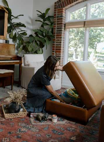 “We have toys in all of our main spaces, but everything has a home,” says Carly. “All of our ottomans are storage ottomans. Just having a really easy space to throw toys back into their home, like having those easy clean-up options, is helpful for us as adults, but also helpful for our kids because we want them to grow up learning how to put their toys away. And if you make that really hard, it’s harder for them.”
