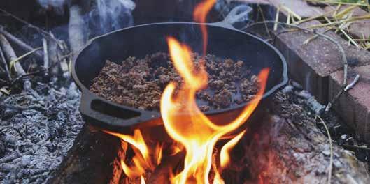 Speaking of heat sources, a camp stove is a musthave for any camping trip. You don’t want to get to your campsite, get everything set up and then not be able to start a fire because of rain. Gas-powered stoves also give you a more even heat than cooking directly on a campfire. My pick for a starter stove is the classic single-burner camp stove. They typically work with propane canisters and will give you a lot more cooking time per canister compared to the flat burners you see used in grocery stores for cooking samples. These can be had for anywhere between $20-30 and the canisters cost about $6 for 16 ounces of fuel. One canister is enough for a few days of regular cooking! If weight is no issue, you might consider the Blackstone 22” Omnivore Tabletop Griddle. It can fit easily on a tailgate and comes in open or hooded configurations. The flat cooktop allows you to cook a variety of recipes with more accurate heat control than traditional camp burners.