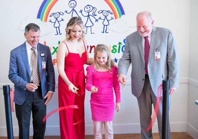 comfortable space for families to create meaningful moments together. There are toys, puzzles, games, books, sensory equipment, leveled seating options, floor mats, a wall to draw on, uplifting colorful artwork, rideable toys and an area to breastfeed in the playroom.