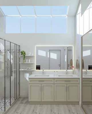 plants, and bring in an analog clock. Something as simple as adding a tray for the hand soap can make an impactful statement as well.