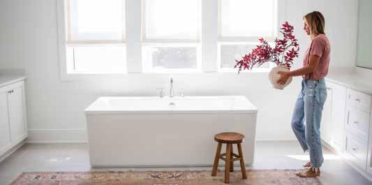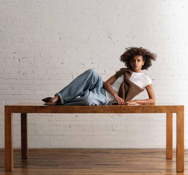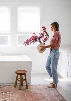 In the same way, someone who prefers an effortless ensemble—like their favorite white T-shirt and comfortable denim jeans—may also look for home pieces that are functional and make their guests feel at ease. Even a handmade rug, one that CONTINUED >