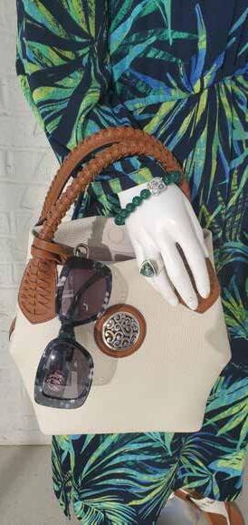 They often lean in to green and natural colors, “We consider green a neutral,” Mizerak said. “We have many good greens in our pockets. We lean toward warmer colors, browns, and creamy off whites, but we love a good theme too.”