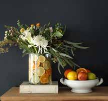 Add an extra burst of color and texture to your floral arrangement by layering fruit around the edges of your vase. To achieve this, place a smaller vase inside a larger one, ensuring the flowers stay contained in the inner vase to preserve their shape. Fill the surrounding space with water and then arrange sliced fruit along the vase’s outer sides. For a fresh touch, add ice cubes to keep the fruit looking vibrant longer and to hold them in place. Not only will the flowers’ fragrance fill the air, but the citrus notes from the fruit will add a refreshing scent.