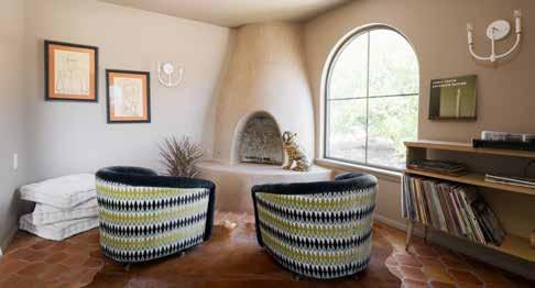Middle: Imagine warming up on a cold winter night in front of this Kiva-plastered fireplace and listening to a nice vinyl on the record player.