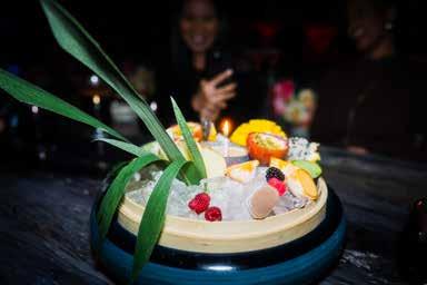 JK Fruit Basket–Exotic fruits, luscious house-made treats, and hibiscus smoke. A theatrical, delicious finale.