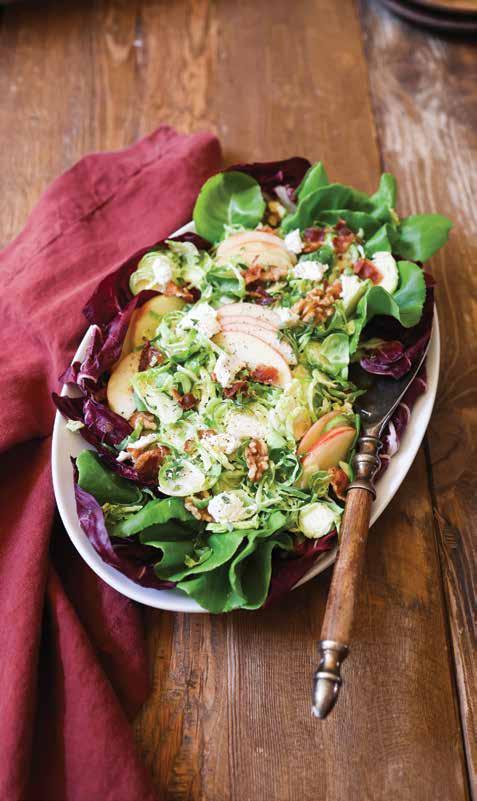 3. Arrange lettuces, Brussels sprouts, apples and shallots on a platter.