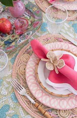 One of the key summer entertaining trends Blue Print’s designers are noticing is the fearless mixing and layering of patterns, colors and textures. “No need to put too much focus on pairing things that ‘match’ perfectly,” the designers say. “Don’t let the little voice in your head keep you from trying something unexpected. Some of the best tablescapes we’ve created have come as a result of much trial and error, and very unexpected pairings!”