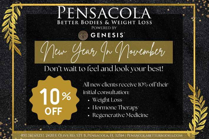 Hello Pensacola! It’s finally here. The season where everyone begins to resurface from their air conditioned lairs after a blazing hot summer and warm fall season start. It’s a time for reflection as we begin the steady wrap up of 2024. I think it’s my favorite portion of the year. We can be gracious and grateful for the triumphs and the lessons learned. We can celebrate the things and people that add positively to our lives. And when we are feel ing particularly down and out, we can always search for that silver lining.