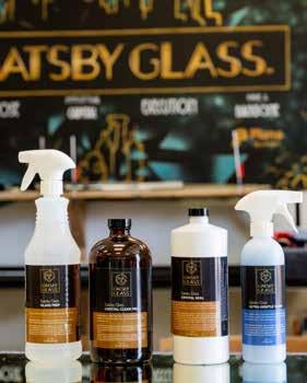 All glass is porous, and because of the presence of minerals in water, elements such as calcium and magnesium can bond to the glass over time, causing etches that make glass look cloudy or streaky. For extra protection against this wear and tear, Gatsby Glass offers the Ultra Ice Pro system. This four-step application process creates a three-bridge covalent bond on glass surfaces, creating a seal at a molecular level and a physical hydrophobic layer on top, which helps to repel contaminants and water. It prevents oxidation, corrosion and staining, ensuring your glass surfaces remain clear and easy to clean. According to Mandy, "Once this system is applied, you get a lifetime warranty on the clarity of the glass."