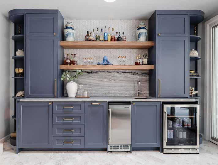 Design Society (IDS)—she won Designer of the Year in 2024—and is also a member of the National Association of the Remodeling Industry (NARI) and the National Kitchen and Bath Association (NKBA). She envisions an eventual return to more traditional spaces in the future, including more character in lighting and hardware, styles like silhouettes (as opposed to minimalist “cold” designs), and greater personality in tiles. These kinds of details help homeowners to live in spaces that truly honor and serve them, and reflect their histories } and priorities.